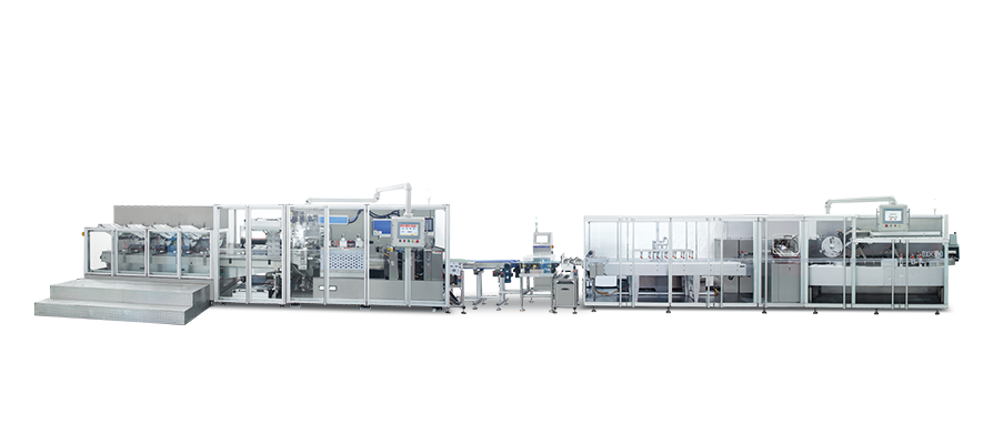 该高速组合自动生产线,集四边封、装盒、三维包装实现一体机流水作业,结构合理、操作简单、提高生产效率和产品合格率,降低工人劳动强度和生产成本,可与捆扎、热收缩机等设备连线配套。