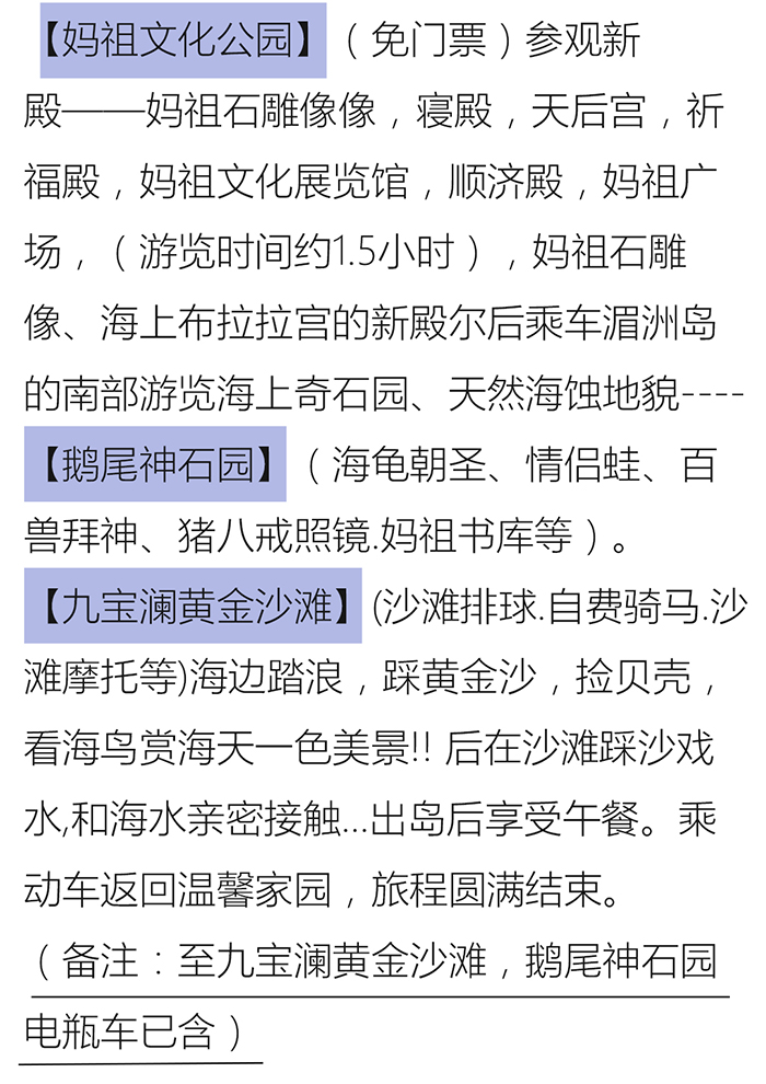 2020年湄洲岛动车二日滨海休闲游