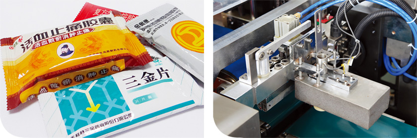 主机配光电色标跟踪,对标正常运转,在运转过程中包袋材料接头对板有误和同步故障,可设置包数报警停机。