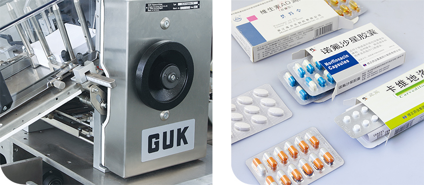DXH-300型自动装盒机属连续式高运行,是机电一体化的高科技产品。适用于药品铝塑板块、药瓶、化妆品、日用品、五金电器、扑克等以及相类似物品的装盒包装,能自动完成说明书的折叠,纸盒打开,物品装盒,打印批号,封盒等工作。
